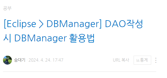 | [Eclipse > DBManager] DAO작성 시 DBManager 활용법 (24.04.24) (0) | 2024.08.27 |