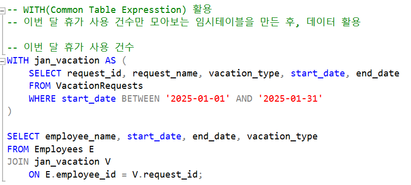 CTE : janS_vacation 임시 테이블에 start_date가 1월인 데이터,