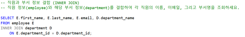 1. 직원과 부서 정보 결합 (INNER JOIN)