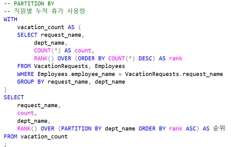 WITH 절로 vacation_count 라는 임시 테이블 생성
