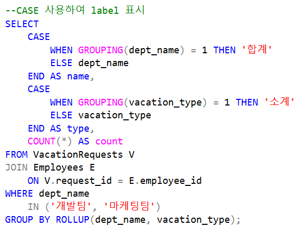 GROUPING(vacation_type)이 1이면, ‘소계’ 출력