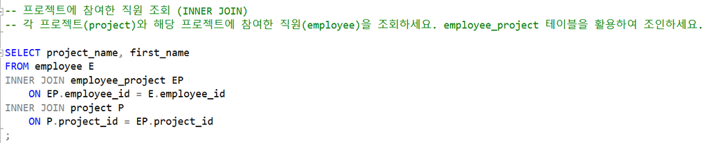 3. 프로젝트에 참여한 직원 조회 (INNER JOIN)