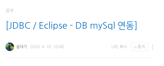 | [JDBC / Eclipse - DB mySql 연동] (24.04.16) (0) | 2024.08.27 |